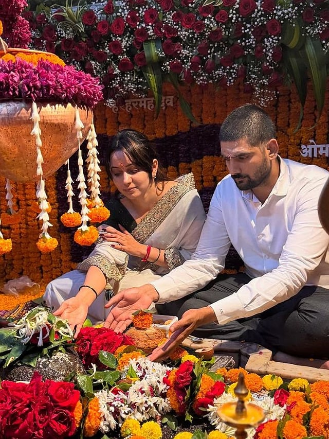 निर्मला नवले आणि त्यांचे पती शुभम नवले यांनी एकत्र पूजा केली आहे.
