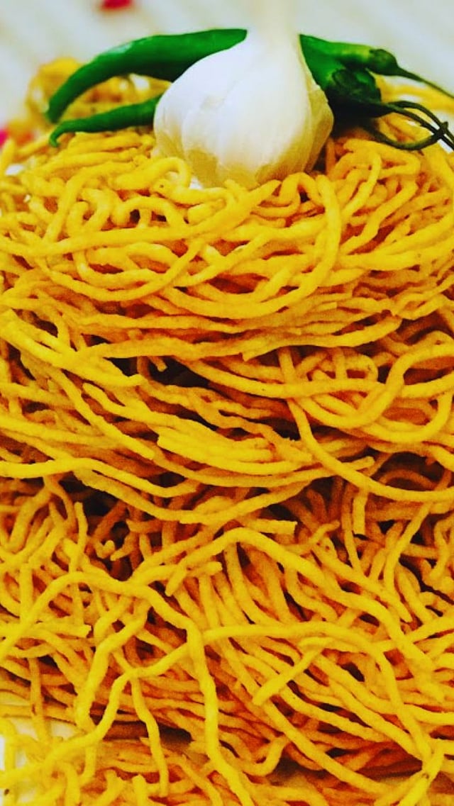 तेल गरम झाल्यावर त्यात शेव पाडून तळून घ्या. शेव गोल्डन फ्राय तळा. शेव जळणार नाही याची काळजी घ्या. नाहीतर त्याची चव बदलेल.