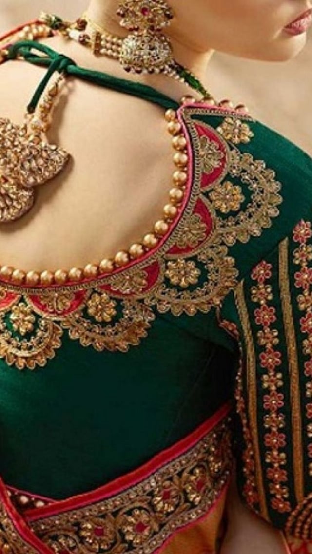 ब्लाऊजच्या मागच्या बाजूला तुम्ही अश्याप्रकारे दुर्गा देवीची पॅच वर्क करू शकता.