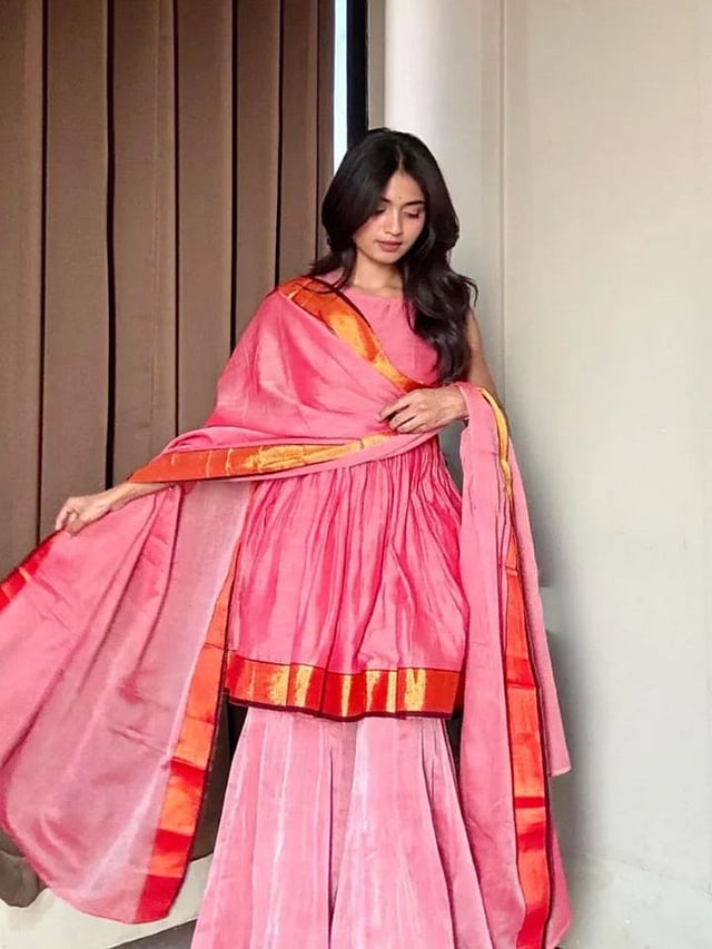 साध्या शराऱ्यासोबत हेवी किंवा कॉन्ट्रास्ट दुपट्टा घेतल्यास आउटफिट उठून दिसतो. मिनिमल लूक पसंत करणाऱ्यांसाठी हा बेस्ट ऑप्शन आहे.