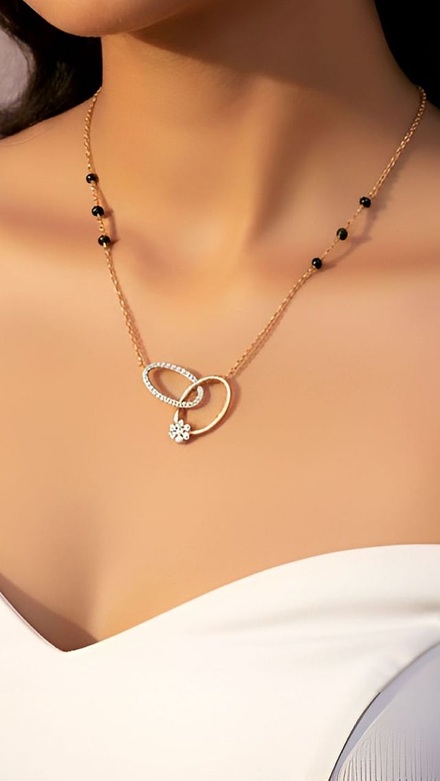 डायमंड पेंडंट मंगळसूत्र हे शर्ट, फॉर्मल ट्राउझर्स किंवा कुर्तीवरही उठून दिसते.