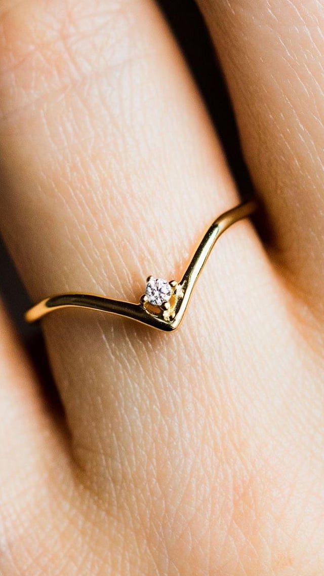 सोन्याच्या एका साध्या बारीक रिंगवर मध्यभागी फक्त एक छोटा हिरा किंवा खडा असतो.