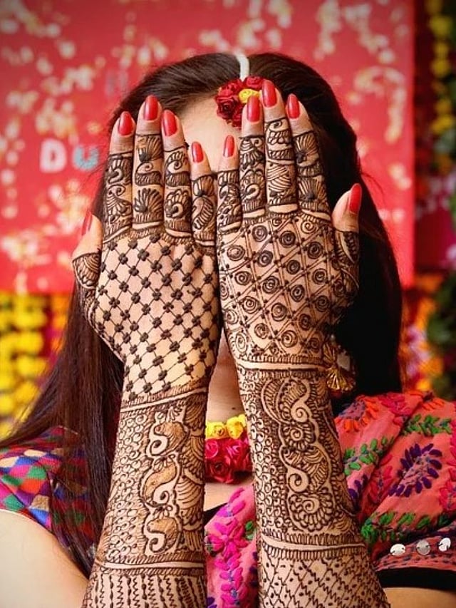 नव्या नवरीच्या हातावर नेहमी कोपर किंवा दंडांपर्यंत मेहंदी काढली जाते.