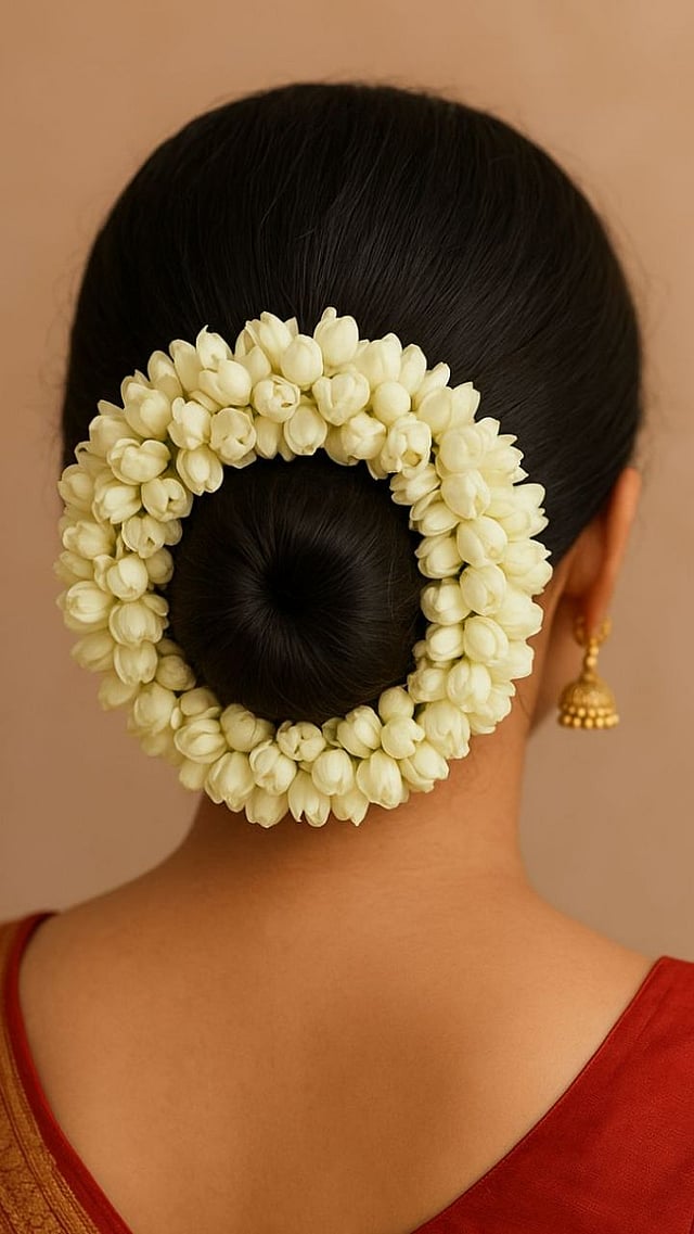 ज्यांना केस मोकळे ठेवायला आवडत नाहीत, त्यांच्यासाठी मानेपाशी केसांचा एक घट्ट आंबाडा बांधून त्यावर आंबाड्याच्या भोवती गजरा पूर्णपणे गोल गुंडाळा.