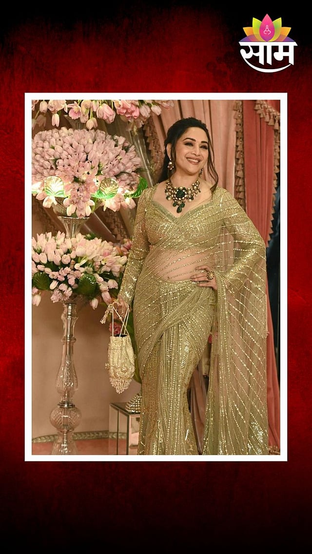 क्रिम कलच्या साडीत माधुरी दिक्षीत खुपच सुंदर दिसत होत्या.