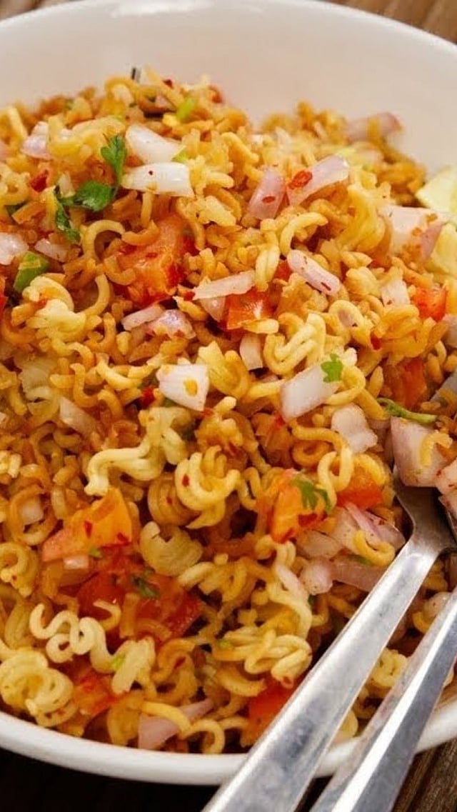 पावसाळ्यात ५ मिनिटांत चटकदार आणि मसालेदार मॅगी भेळ बनवा.