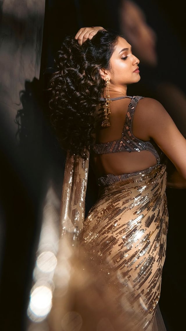 या फोटोशूटमध्ये प्रियदर्शनीने सिक्विन वर्क सोनेरी रंगाची साडी परिधान केली आहे. ती खुपच सुंदर दिसत आहे.