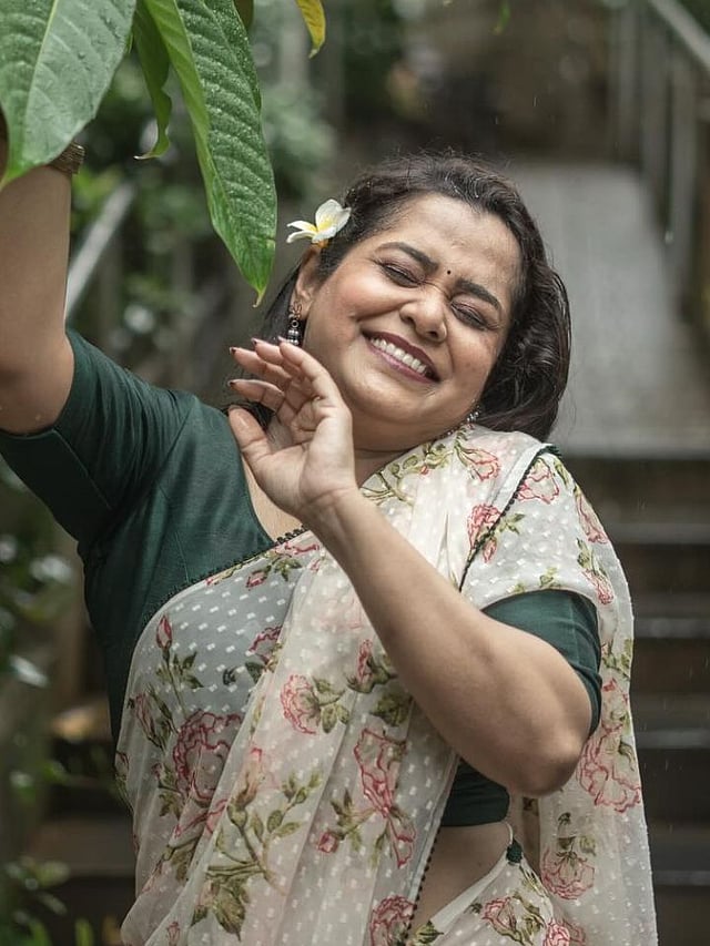 चेतनाने केस मोकळे सोडले आहेत. त्यात चाफ्याचे फूल माळले आहे.