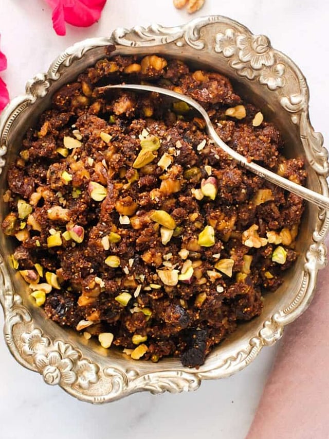 अक्रोड हलवा तयार आहे, वर सुकामेवा घालून सजवा आणि गरमागरम सर्व्ह करून आनंद घ्या.