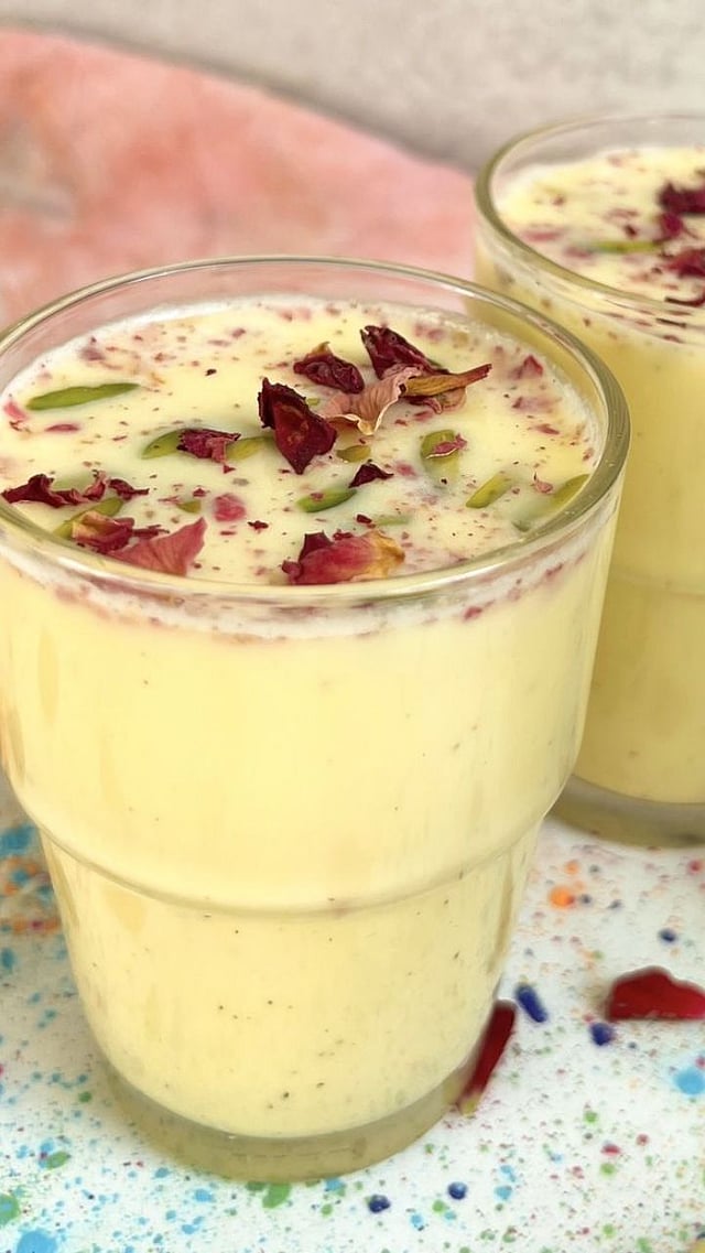 त्यानंतर यात थंडाईचे महत्त्वाचे घटक मिक्स करा. यात केसर, सुक्या गुलाबाच्या पाकळ्या मिक्स करा. गुलाबाच्या पाकळ्या एकदा काही सेकंदासाठी मिक्सरला लावा.