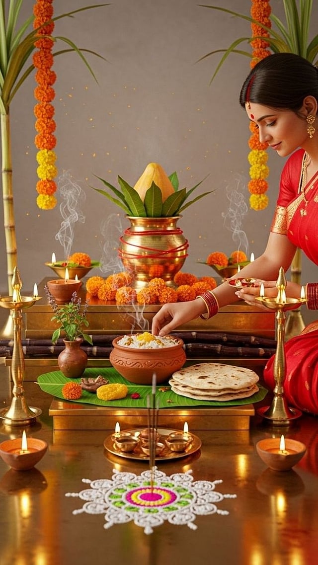 सुगडामध्ये ऊस, बोरे, गाजर, हरभरा, शेंगदाणे आणि गव्हाच्या ओंब्या भरा. त्यावर थोडे तीळ आणि तिळगूळ टाका