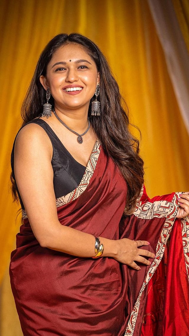 मरुन साडी आणि लाल पदर असं या साडीचं कलर कॉम्बीनेशन आहे.