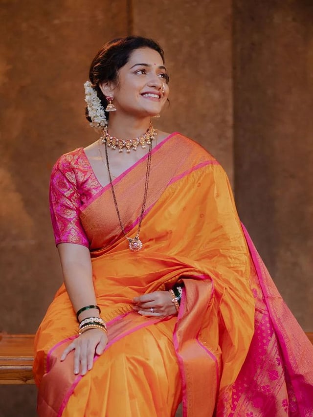 हृताने नुकतेच चाहत्यांसोबत नारंगी रंगाची साडी परिधान करत फोटोशूट शेअर केले.