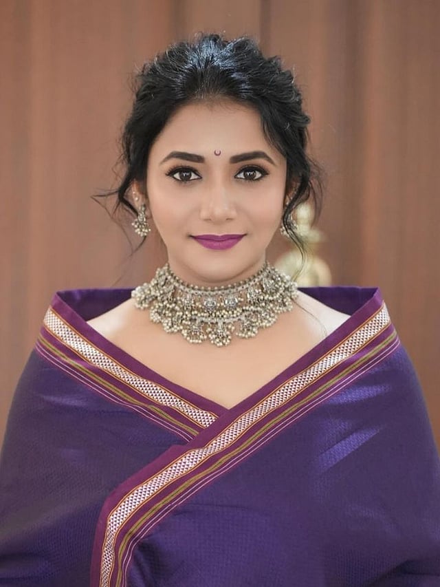 नुकतंच अभिनेत्रीने सोशल मीडियावर जांभळ्या रंगाच्या साडीची चोळी एका अनोख्या अंदाजात परिधान केली आहे.
