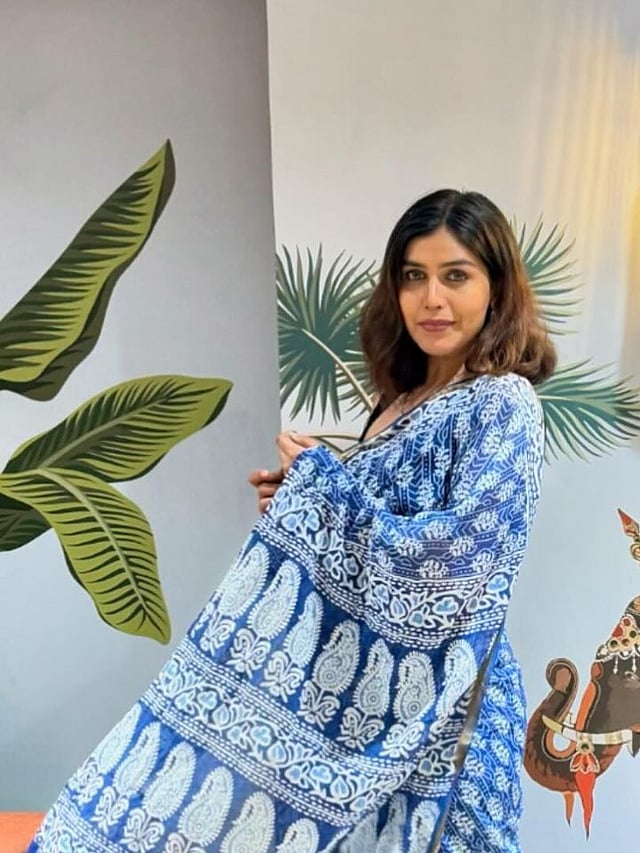 नुकतंच अभिनेत्रीने इन्स्टाग्रामवर ब्लू कलरची फॅन्सी प्रिंटेड साडी वेअर करत सर्वांचेच लक्ष वेधलेय.