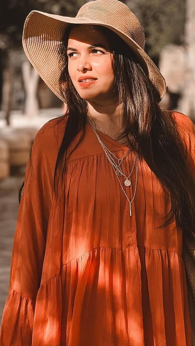मितालीने ऑरेंज कलरचा वनपीस, डोक्यावर हॅट असा सुंदर लूक केला आहे.