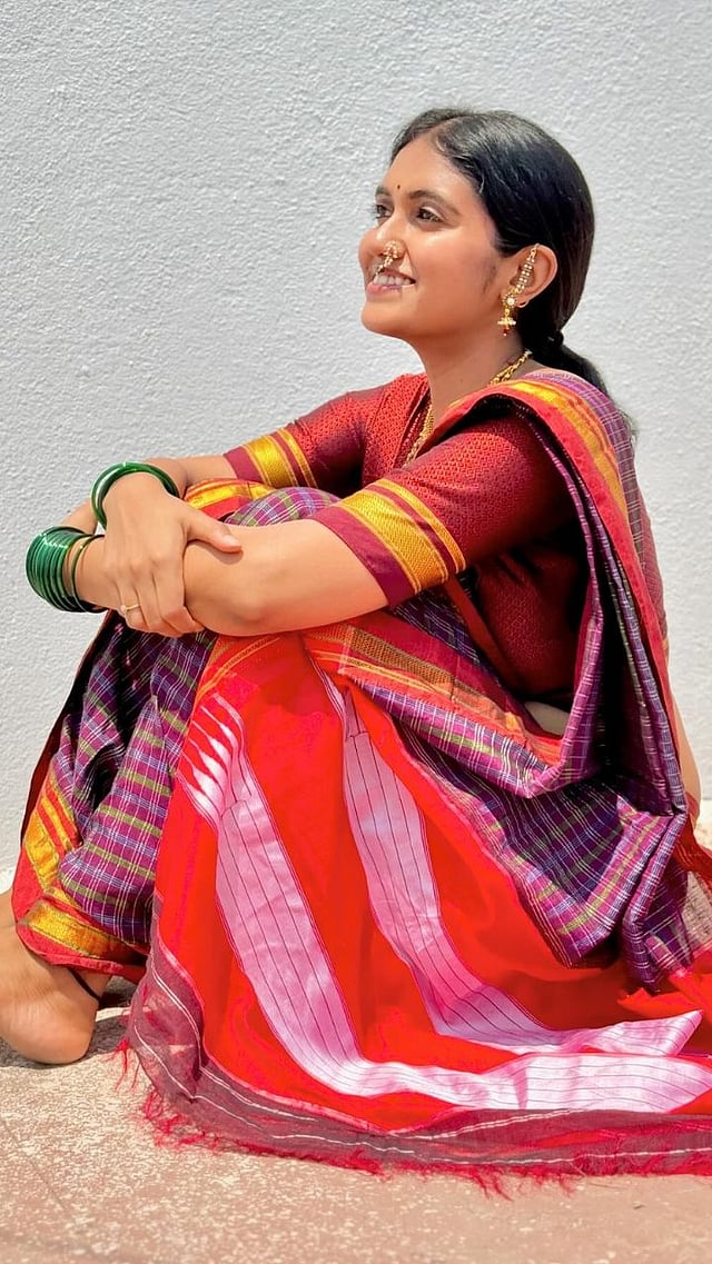 नऊवारी लूकमध्ये रिंकून चाहत्यांचे लक्ष वेधून घेत आहे.