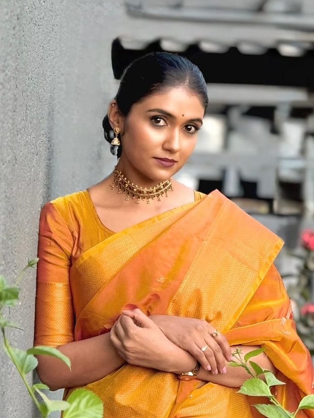 रिंकूने गोल्डन रंगाची सुंदर साडी नेसली आहे. त्यावर सोनेरी कानातले, गळ्यात छान हार, हातात स्टायलिश बांगडी आणि सुंदर घड्याळ परिधान केले आहे.