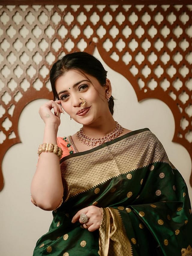 हिरव्या रंगाच्या साडीत रुचिराचं सौंदर्य खूपच खूलून दिसत आहे...