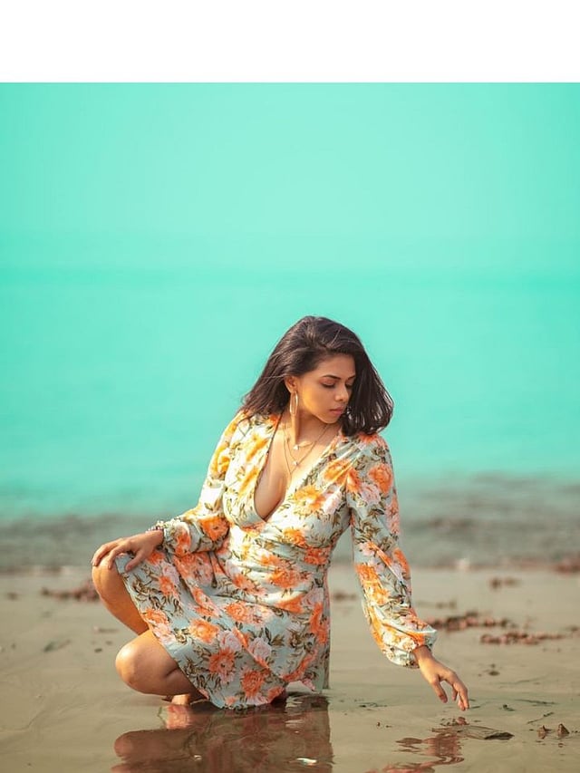 समुद्राच्या सान्निध्यात जाऊन वाळूत बसून तिने हे फोटोशूट केले.