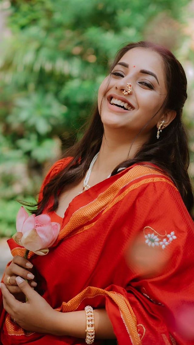 सायलीने हातात कमळाचे फूल घेऊन सुंदर फोटोशूट केले आहेत.