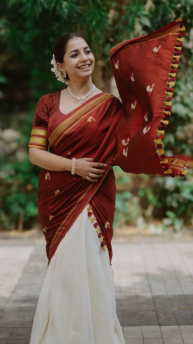 सायलीने व्हाईट कलरचा स्कर्ट आणि त्यावर चॉक्लेट कलरची खणाची ओढणी घेतली आहे.