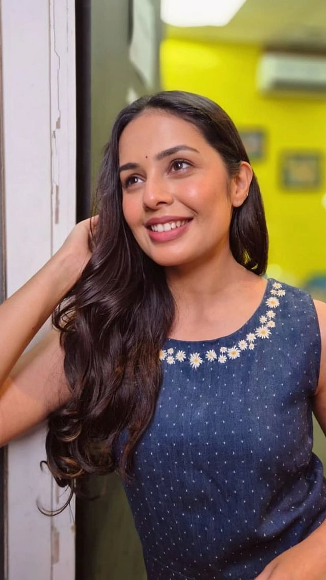 निळ्या रंगाच्या कुर्तीमध्ये शिवानीचा सिंपल लूक आहे.