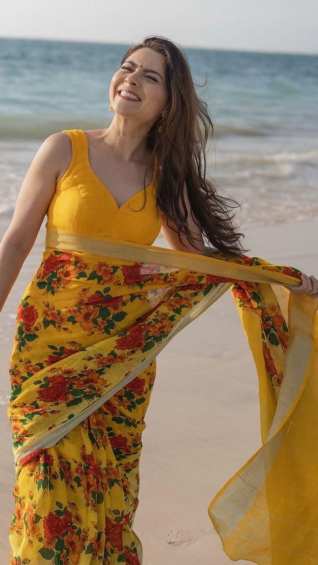 सोनालीने पिवळ्या रंगाची फ्लोरल प्रिंटेड साडी नेसली आहे.