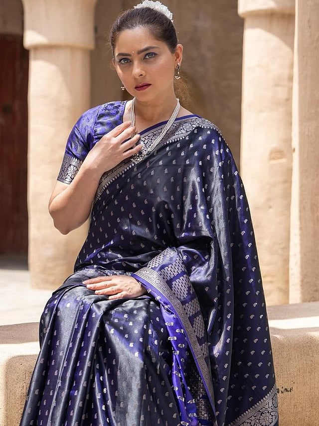 नुकतंच सोनालीने इन्स्टाग्रामवर ब्लू रंगाची काठापदराची साडी नेसून सुंदर फोटोज शेअर केले आहेत.