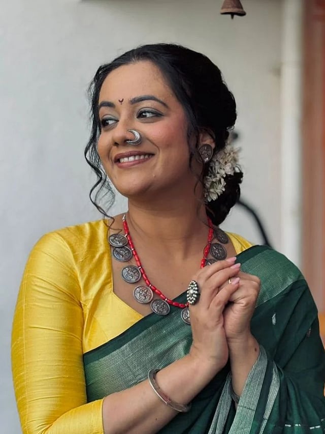 स्पृहाने केसांचा छान आंबाडा घातला आहे. त्यात ती खूप सुंदर दिसत आहे.