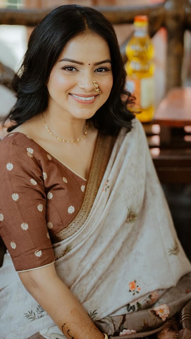 नाकात नथ, हातात हिरवा चुडा अन् सुंदर साडी असा लूक तिने केला आहे.