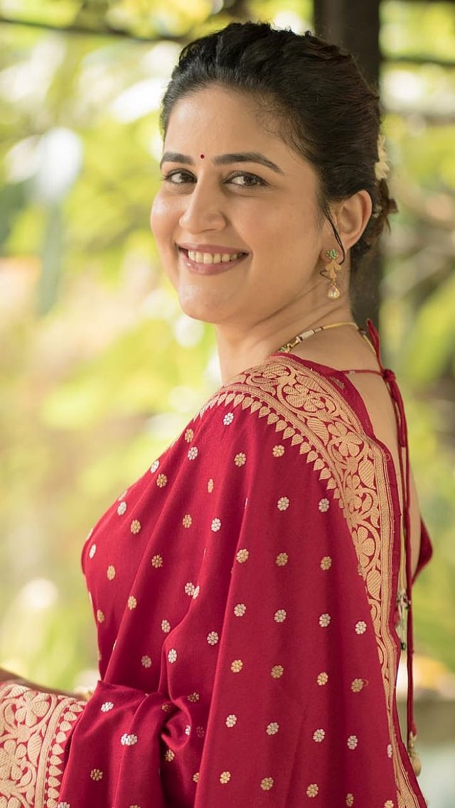 वैदेहीने नुकतेच सोशल मीडियावर लाल रंगाच्या काठपदर साडीतील सुंदर फोटो शेअर केले आहेत.