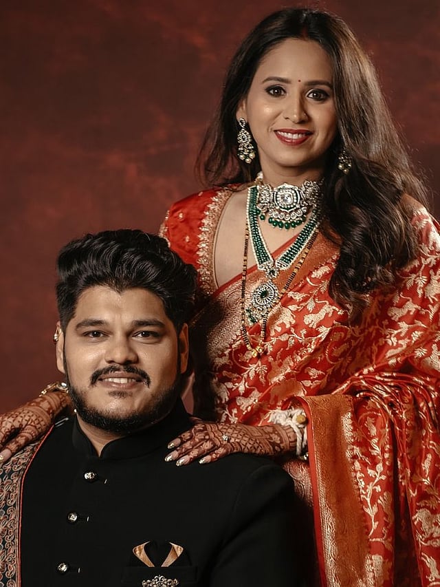 स्वानंदीने लाल रंगाचा बनारसी शालू तर आशिषने ब्लॅक कलरची शेरवानी परिधान करीत हटके फोटोशूट केले.