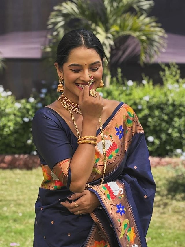 साक्षीने या महाराष्ट्रीन लूकसाठी केसांत गजराही माळला आहे.