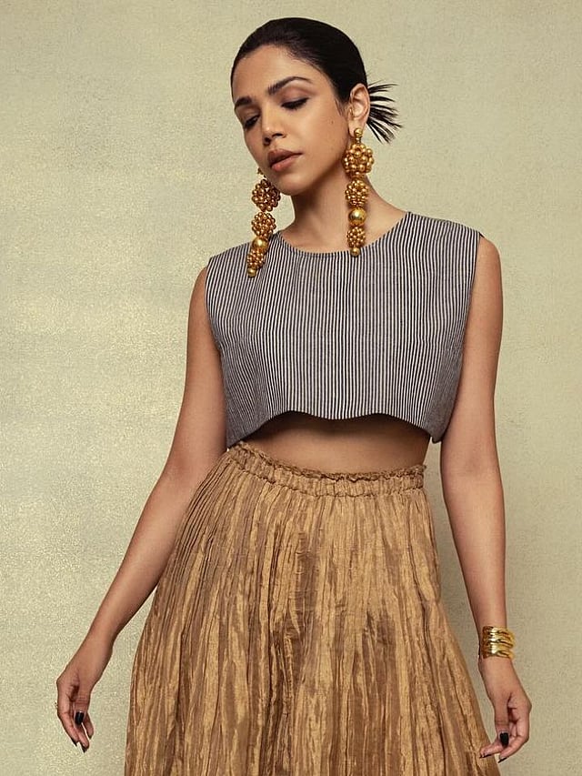 श्रियाने या लूकवर गोल्डन इयर रिंग्ज आणि बांगड्याही कॅरी केलेल्या आहेत. या फोटोंमध्ये अभिनेत्री खूपच सुंदर दिसते.
