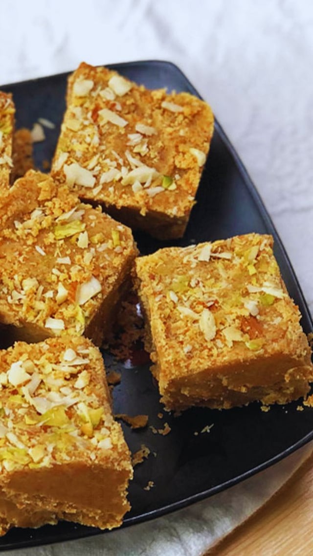 शेवटी यावर काजू-बदामचे तुकडे टाका आणि तुमच्या आवडीच्या आकारानुसार वड्या पाडा. जवळपास १-२ तास मोहनथाळ फ्रिजमध्ये सेट होण्यासाठी ठेवा.