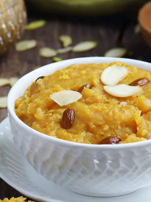 चव वाढवण्यासाठी वेलची पूड आणि कापलेले बदाम, काजू, पिस्ते घाला. यामुळे हलव्याला खास सुगंध आणि कुरकुरीतपणा मिळतो.