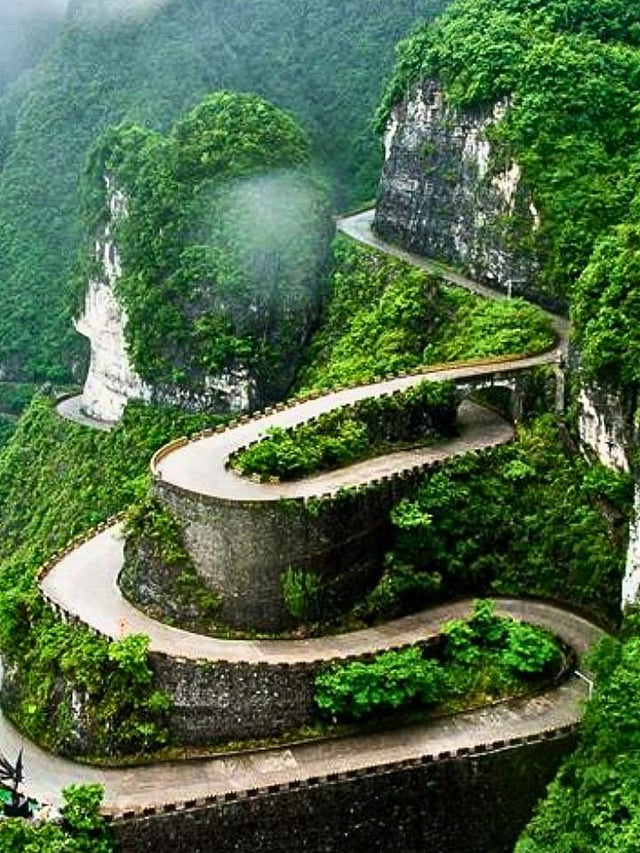 चीनमधील डोंगराच्या कडेला बांधलेल्या या रस्त्याला अनेक अरुंद रस्ते आहेत.