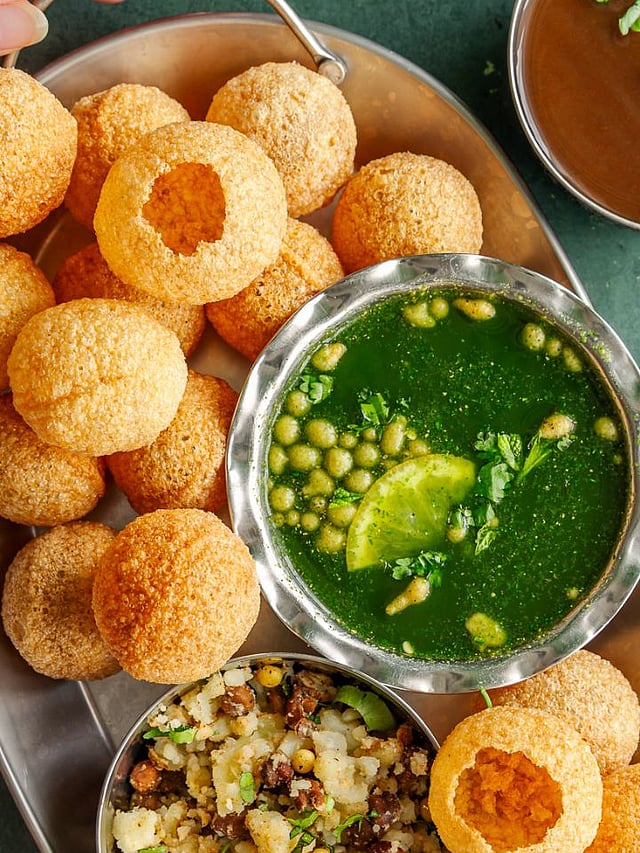 पुरीमध्ये सर्वात आधी मिक्स कडधान्य टाका. त्यात गोड आणि तिखट पाणी टाकून खा.