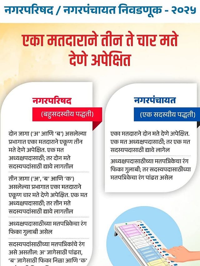नगरपरिषद आणि नगरपंचायत निवडणुकीसाठी प्रत्येक मतदाराला तीन ते चार मत देणे अपेक्षित आहे.