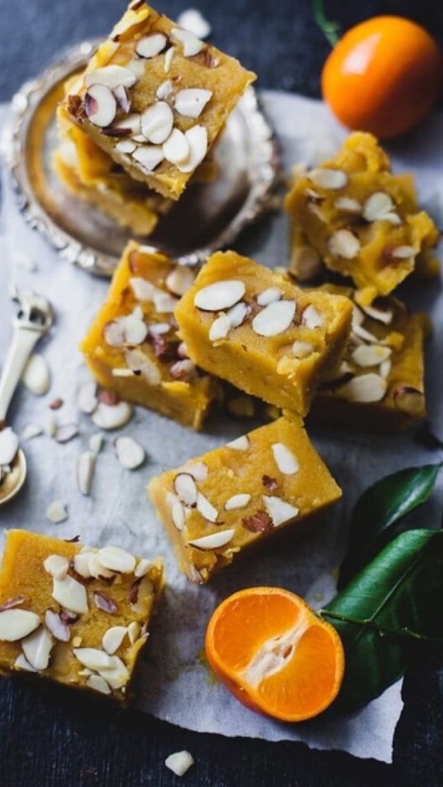 आता हे सर्व मिश्रण प्लेटमध्ये टाकून संत्र्याची बर्फी ५ तास रेफ्रिजरेटरमध्ये सेट करायला ठेवा.