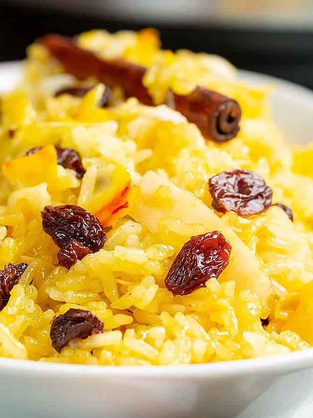 एका छोट्या पॅनमध्ये तूप गरम करून त्यात काजू-बदाम हलकेसे परतून भातात घालावे.