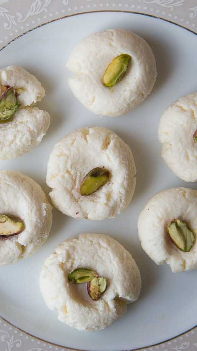 पेढ्यावर एक पिस्ता लावून सोंदेशला सजावट करा.