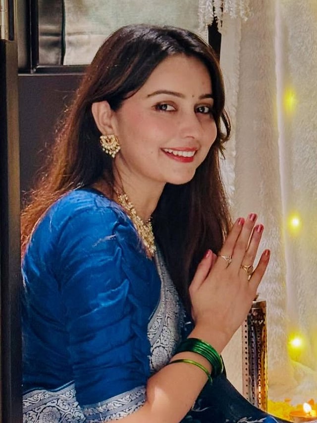 निर्मला यांनी छान निळ्या रंगाची साडी नेसली आहे. त्यावर मराठमोळी साजश्रृंगार केला आहे.