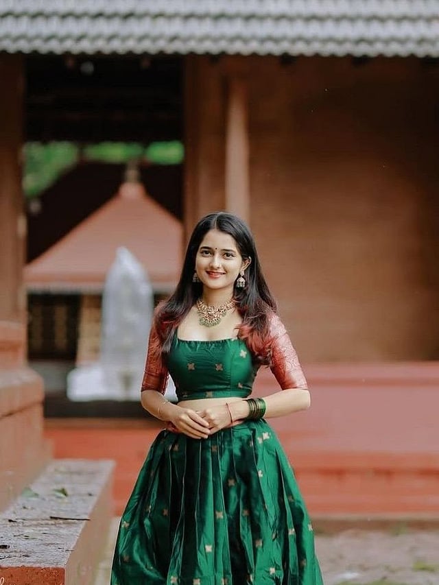 पैठणी कापडापासून बनवलेली कुर्ती आणि त्यासोबत फ्लेअर स्कर्ट हा डिझाईन आरामदायी तसेच एलिगंट दिसतो. हळद-कुंकू आणि घरगुती समारंभांसाठी योग्य.