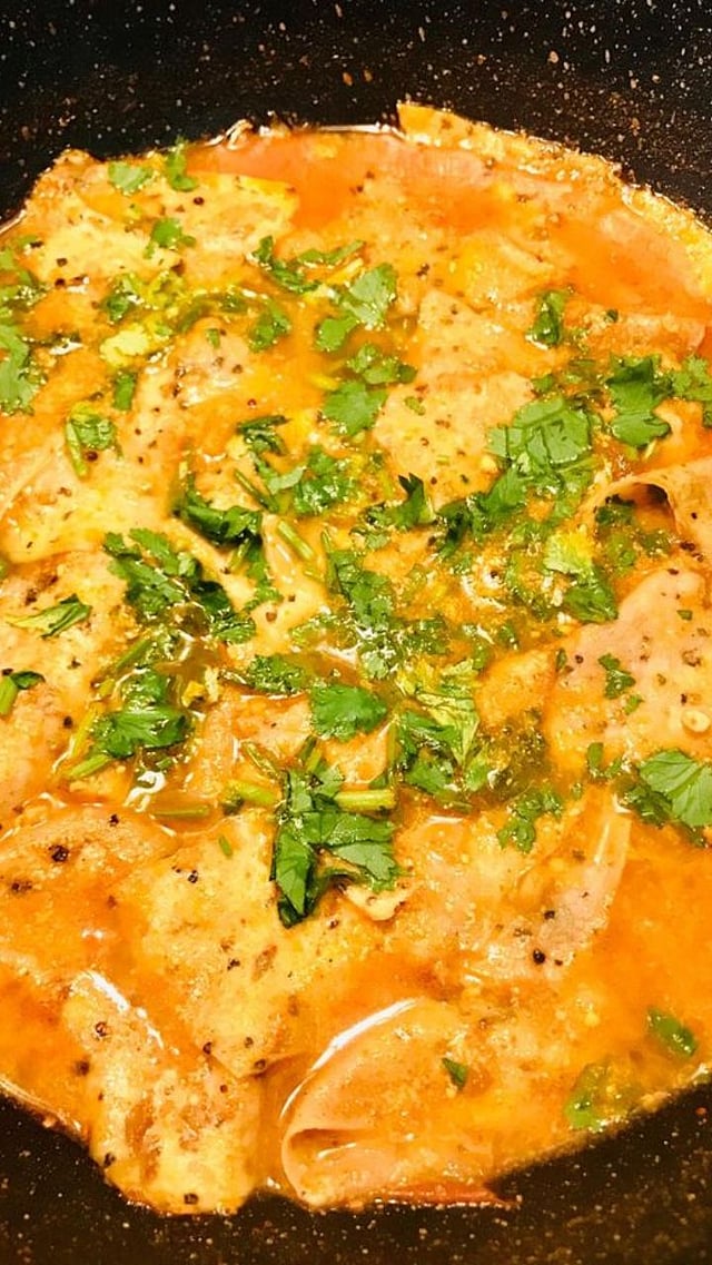 शेवटी गॅस बंद करून पापडाचे तुकडे यात टाका आणि वरून कोथिंबीरने गार्निश करा. ही रेसिपी बनवायला अगदी सिंपल आहे.