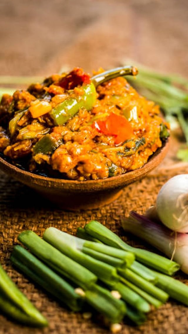 पॅनमध्ये तेल गरम करून यात लसूण, कांदा, हिरवी मिरची, सुकी लाल मिरची छान परतून घ्या. गॅस कमी आचेवर ठेवा