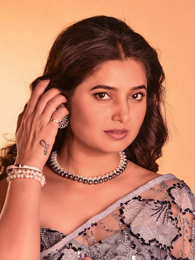 मराठमोळी अभिनेत्री प्राजक्ता माळीने नवरात्री स्पेशल सुंदर साडीत फोटोशूट केले आहे. तिने राखाडी रंगाची फ्लोरल प्रिंटेड साडी नेसली आहे.