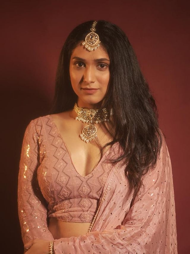 प्रियदर्शनीने नुकतेच सोशल मीडियावर पिच कलरच्या घागऱ्यातील फोटो शेअर केले आहेत.
