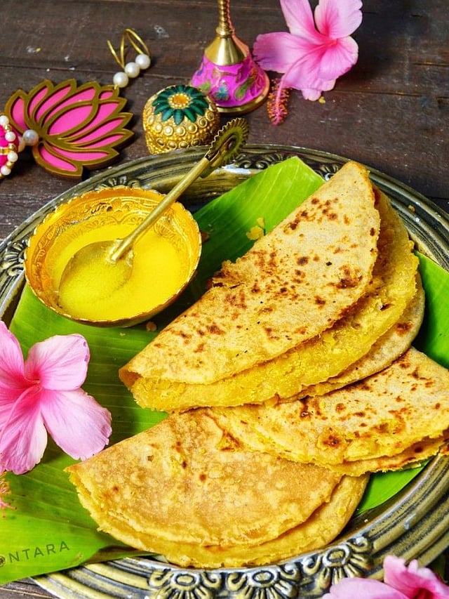 गरम तव्यावर दोन्ही बाजूंनी सोनेरी रंग येईपर्यंत भाजा. वरून थोडे तूप लावल्यास चव आणि मऊपणा वाढतो.